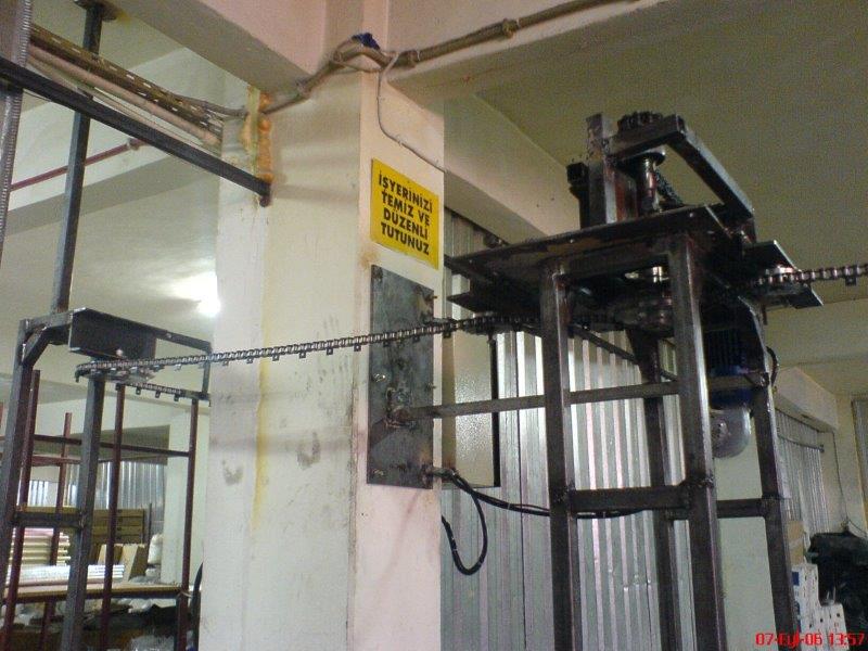 Akbaş Metal Süpürge imalatı tesisinde imal edilen süpürgelerin saplarının boyahanede seri olarak boyanabilmesi amacıyla zincirli konveyör sisteminin HMT tarafından projelendirilip, imalatlarının yapılması ve devreye alınması işidir. İmalatı bitirilen bu tesis sonrası tesisin üretim kapasitesi %400 arttırılmıştır.